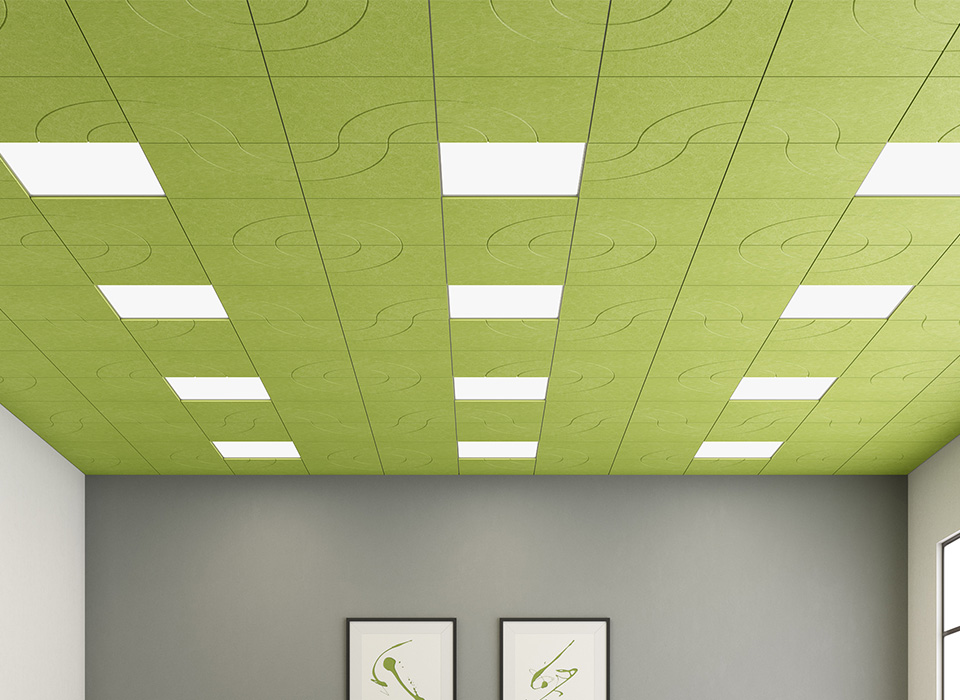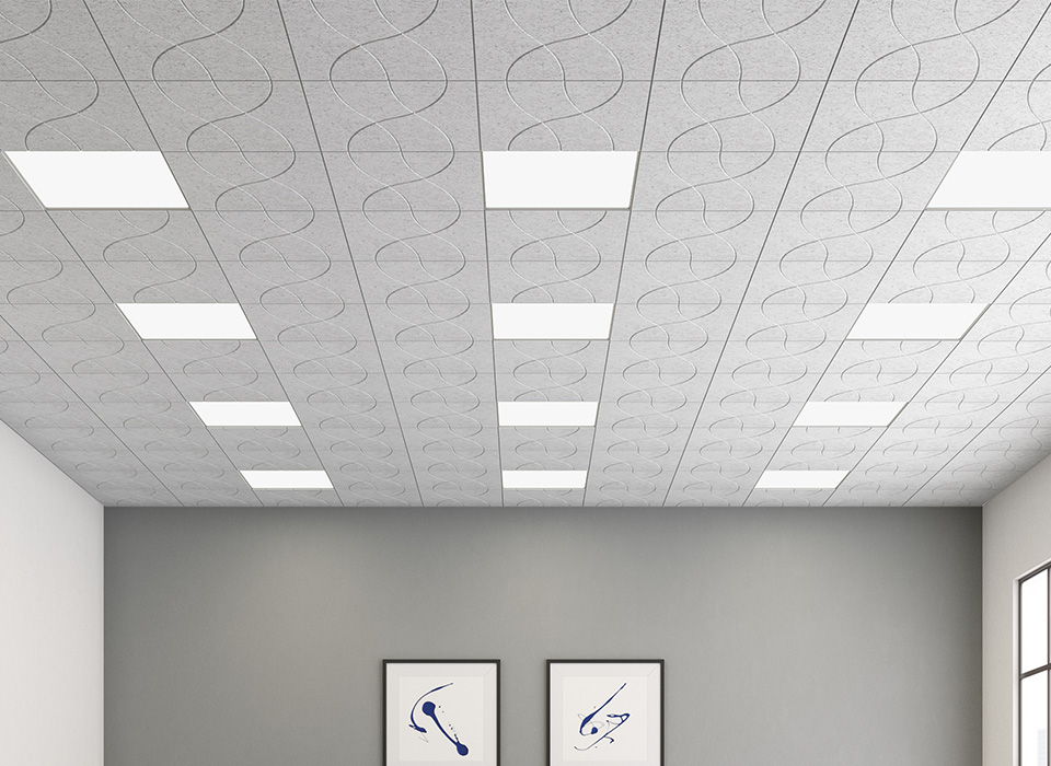Artistic EchoDeco Ceiling Tiles simultaneously reduce unwanted noise, increase energy efficiency, and update the look for your space. EchoDeco Ceiling Tiles (2’ x 2’ or 2′ x 4′) simply drop into any ACT ceiling grid with no installation or costly construction and have an NRC rating of 0.85. Our acoustic ceiling tiles get right to work to turn down the noise.