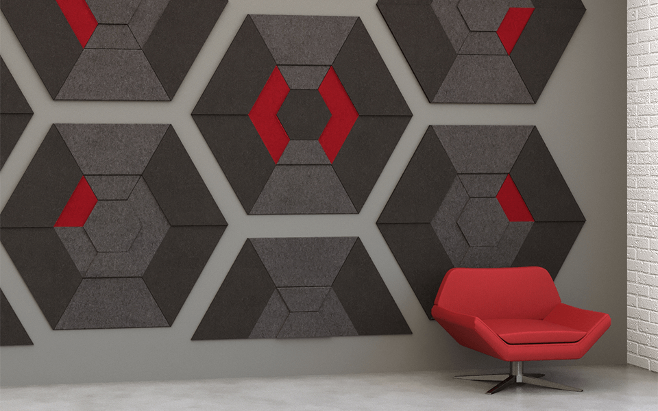 Artistic flare with acoustic balance, EchoDeco Shapes bring your designs to life while reducing ambient noise. Use our acoustic wall tiles to create a mural, add a pop of color or design a masterpiece, NRC rated EchoDeco Shapes acoustically balance your space while adding inspiration to empty walls.