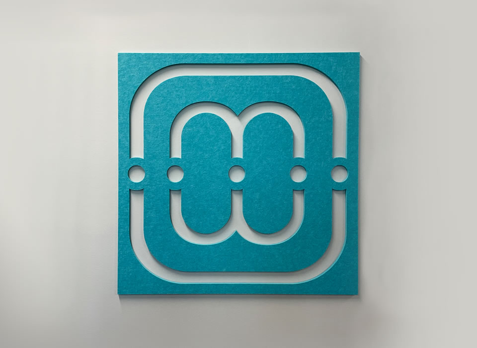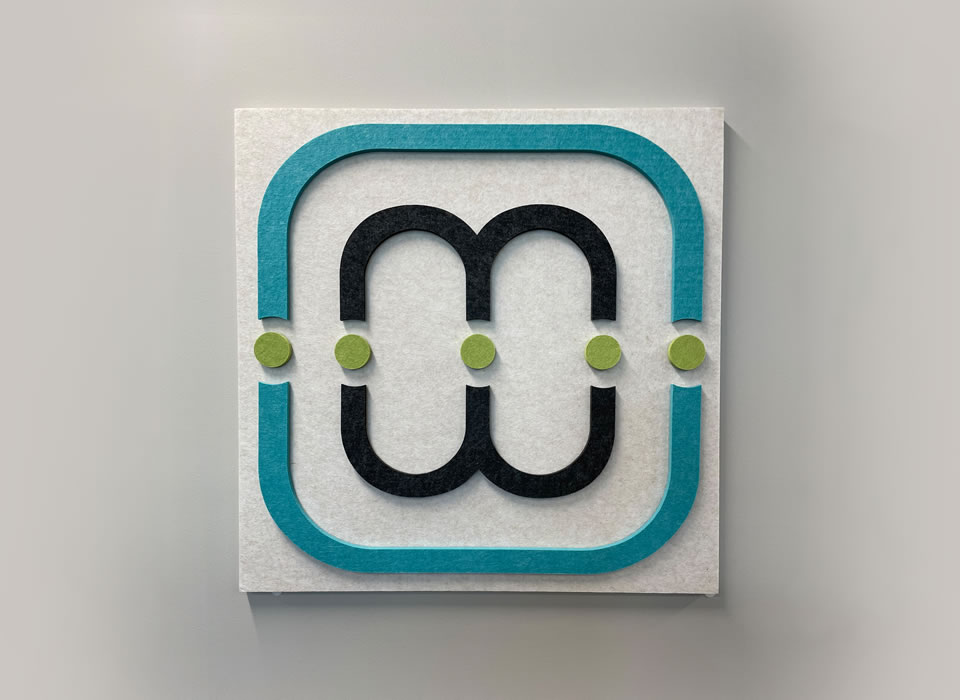 There are 5 different ways we can use our acoustic EchoScape material to create your quiet yet vibrant environment. Slide through the images on the right to see the different techniques that we can use to manufacture your design or logo.