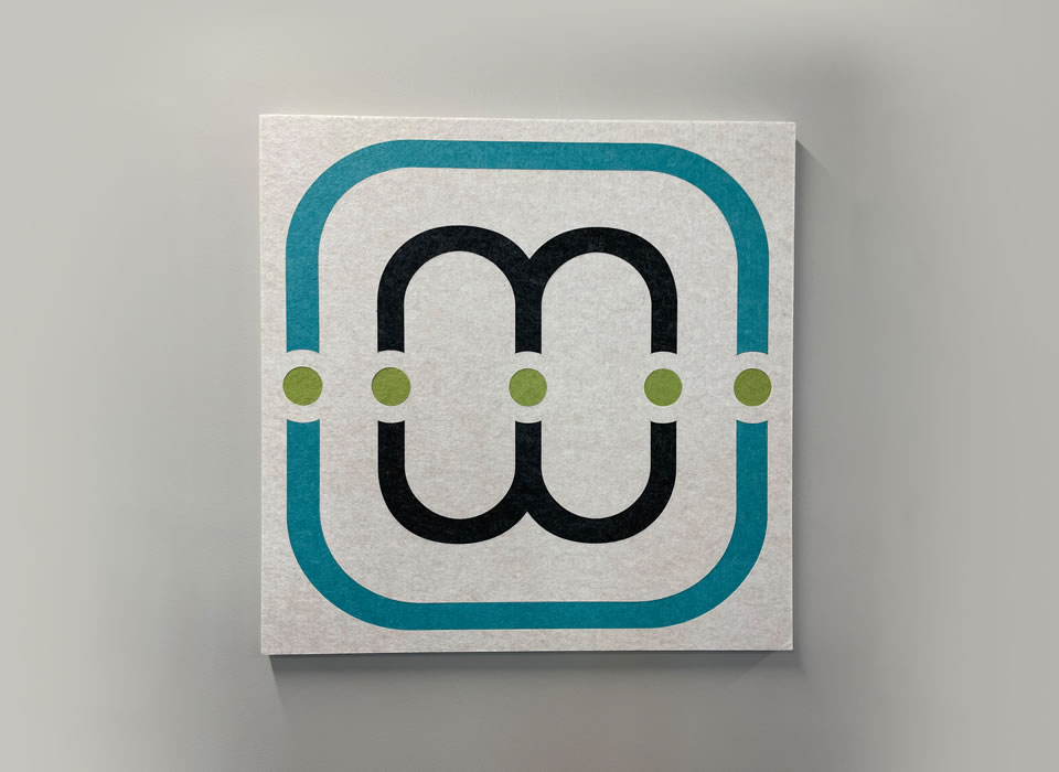 Reducing disruptive noise in your environment is imperative, so why not make your acoustic solution match your brand? Our highly NRC rated EchoScape™ acoustic material in 3/8″ (9mm) and 3/4″ (18mm) thickness can be customized with your logo, brand or unique design ideas. Add the art and brand you want, where you want. Designs can be attached to walls, hung from ceilings or incorporated into the furniture as room and desk partitions.