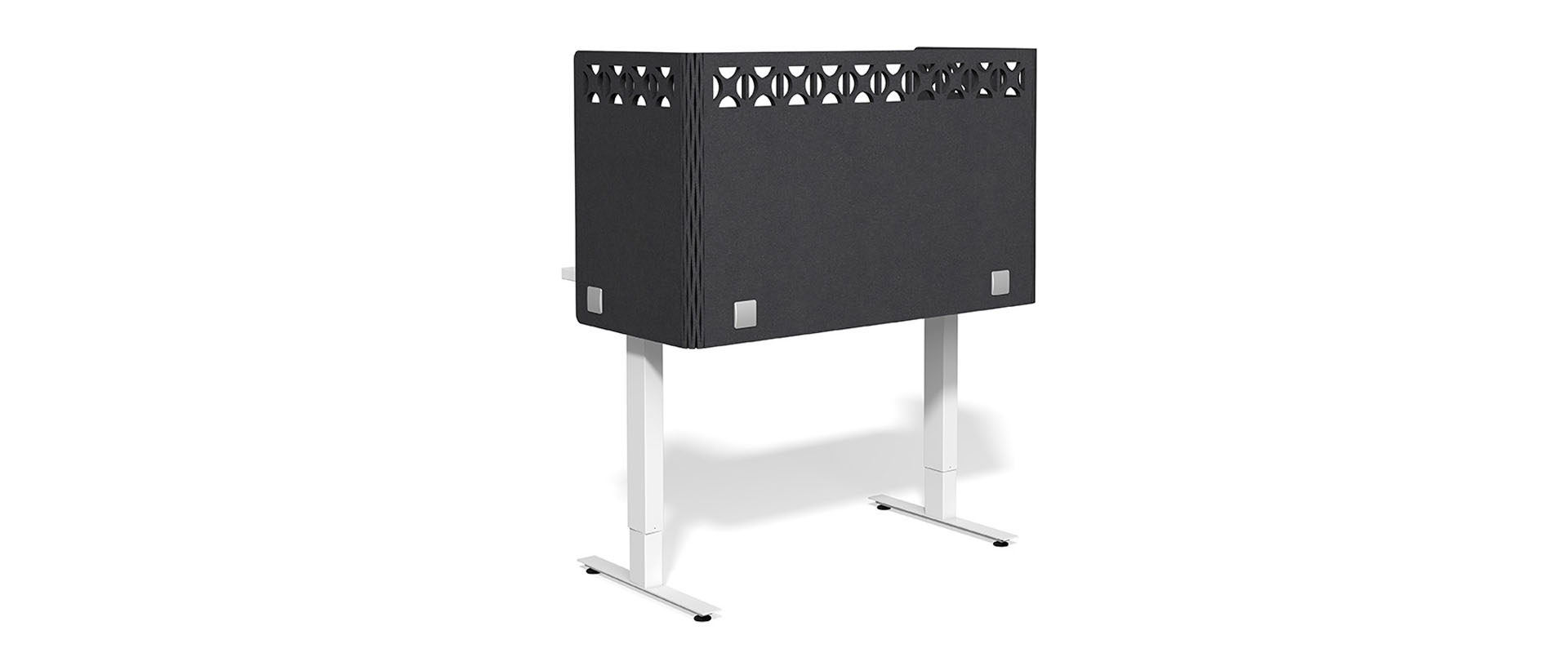 The U-Panel EchoWrap Midtown Desk divider is available with a permanent or removable mount.