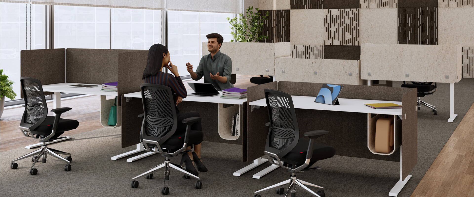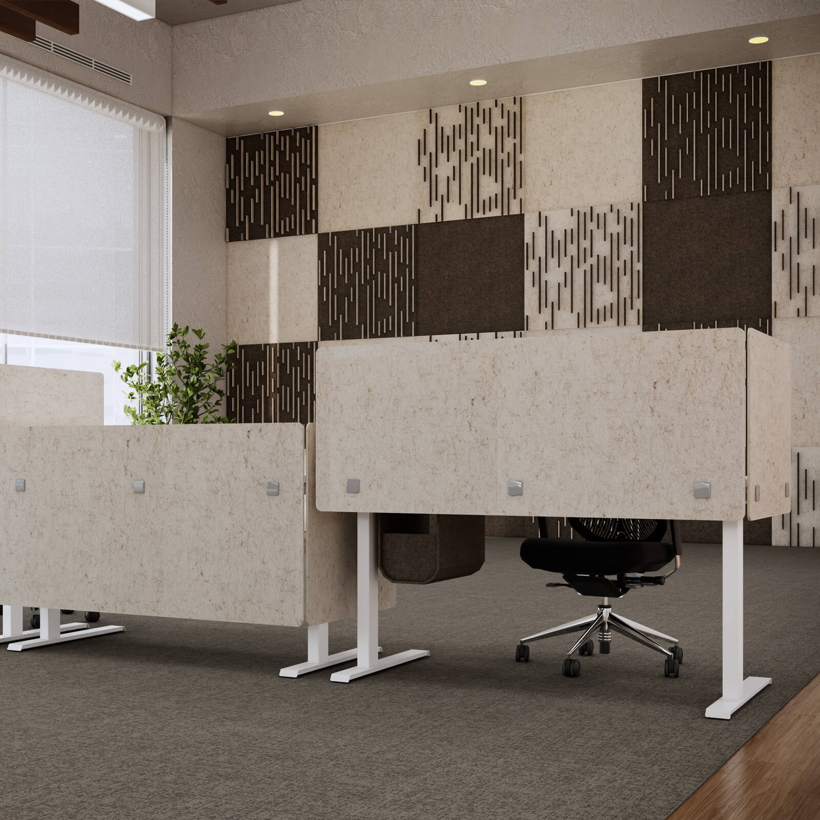 Flexible mounting options allow panels can be mounted flush against the desk or with up to a 1” gap to allow for wire management.